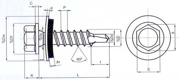 Саморез кровельный со сверлом DIN 7504 K (шуруп DIN 7504 K) – крепежная деталь с шестигранной головкой, пресс-шайбой и стальной уплотнительной шайбой EPDM с прокладочным материалом из синтетического каучука (этилен-пропилен-диен-мономер). Уплотнительный материал шайбы EPDM имеет превосходную износостойкость, полностью обеспечивает герметичность отверстий и предотвращает деформацию прикрепляемого материала при закручивании саморезов.